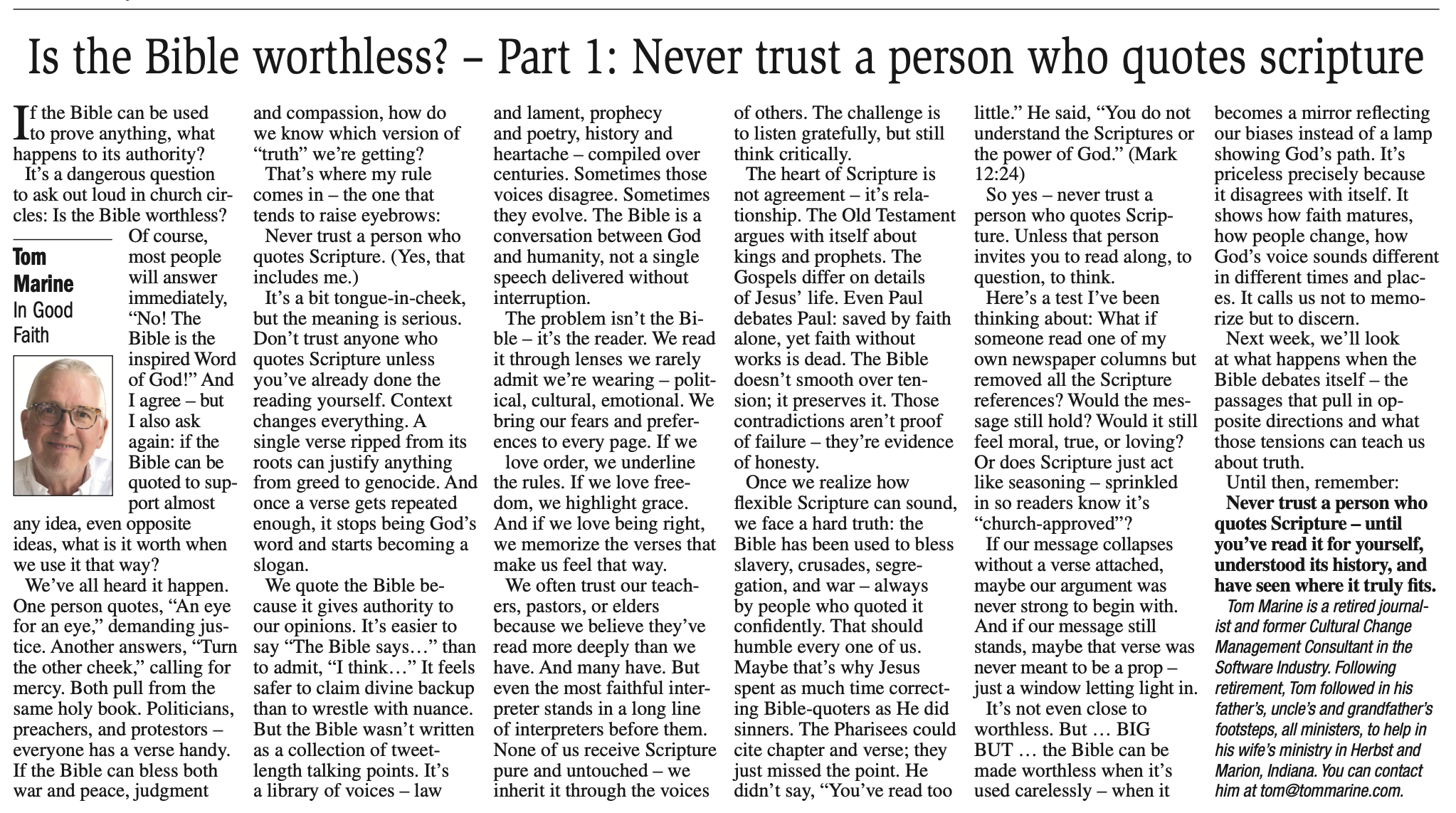 I’ve never been so happy to have an error of mine pointed out … in the article, I say “Paul debates Paul” when in fact James wrote “faith without works is dead”. So, it should read Paul debates James. PERFECT! The challenge to the “person who quotes scripture”!!! I am humbled, honored to have been read, and ecstatic to have been corrected! Thanks to a guy named Paul … really.